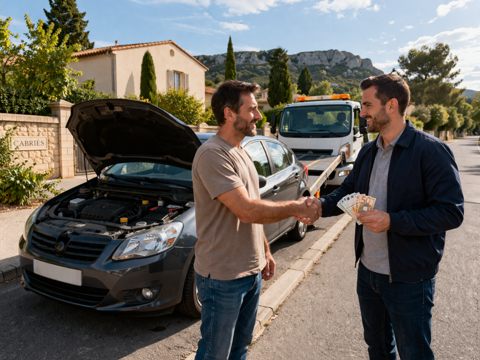 Le déplacement à domicile est entièrement gratuit à Cabriès, mais aussi à Marseille et Aix-en-Provence. Une fois l’offre validée, le paiement est immédiat, en espèces ou par virement sécurisé. Si la voiture est immobilisée, un enlèvement est organisé rapidement, sans frais supplémentaires.